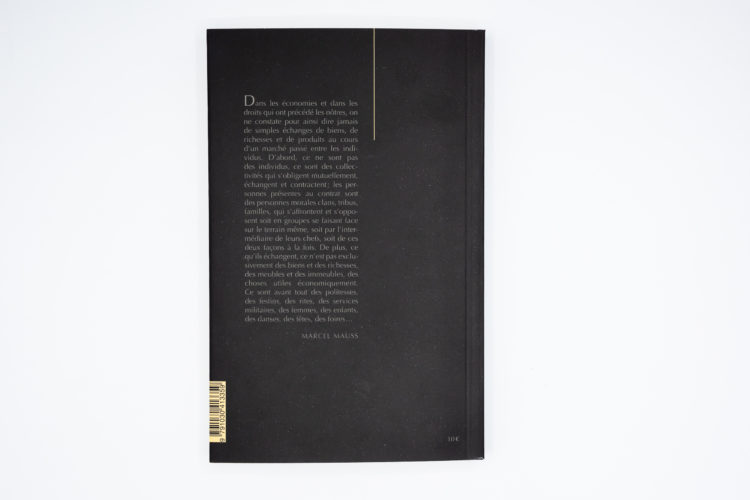 “Nous n’avons pas qu’une morale de marchand”, énonce Marcel Mauss dans ce texte majeur de l’anthropologie du xxe siècle. Il y expose le résultat de plusieurs décennies de recherches sur différentes sociétés archaïques. Non seulement il est possible d’envisager l’échange en dehors du marché, mais des économies complexes reposent sur le don et le contre-don. Le nom du système au cœur de son analyse est resté dans les annales : le potlatch.