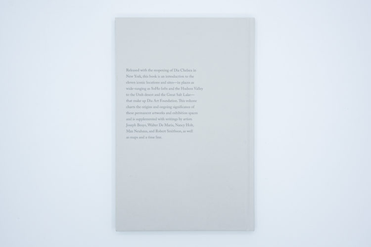 “Released with the reopening of Dia Chelsea in New York, this handy guidebook maps Dia Art Foundation’s constellation of eleven art spaces across the globe. Designed with everyday art lovers and dedicated art tourists in mind, the book charts the institution’s bold history and experimental present. Widely known for Dia Beacon, a destination museum in the Hudson Valley, Dia is the steward for seven dedicated artist sites and maintains four nontraditional exhibition spaces. The artist sites—iconic, site-specific artworks installed in places as disparate as Soho lofts and Times Square to the Utah desert and the Great Salt Lake Basin—attest to Dia’s deep support of such artists as Robert Smithson, Nancy Holt, and Walter De Maria. The book addresses the origins and ongoing significance of these visionary permanent artworks and exhibition spaces and is supplemented by artist writings, maps, and a timeline.”