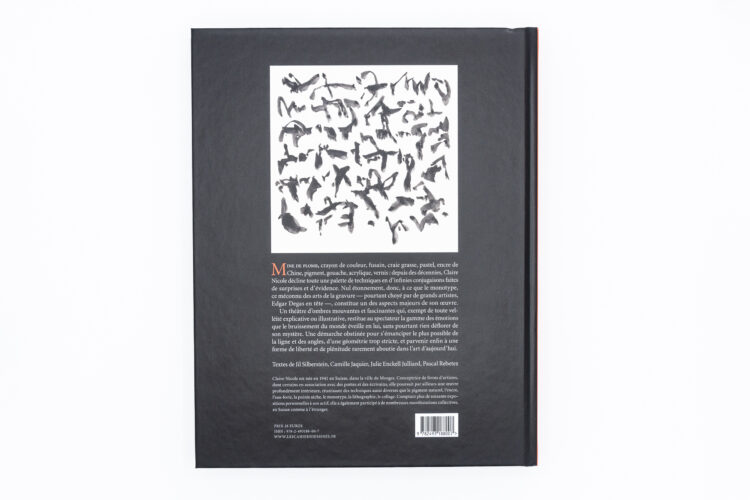 Lead pencil, coloured pencil, charcoal, grease pencil, pastel, Indian ink, pigment, gouache, acrylic, varnish: for decades, Claire Nicole has been using a whole range of techniques in an infinite combination of surprises and evidence. It is not surprising, therefore, that the monotype, this great unknown of the printmaking arts – yet cherished by great artists, Edgar Degas in particular – constitutes one of the major aspects of her work. A theatre of moving and fascinating shadows which, free of any explanatory or illustrative desire, restores to the viewer the range of emotions that the rustling of the world awakens in him, without however revealing anything of its mystery. A singular and obstinate approach to emancipate oneself as much as possible from line and angles, from a too strict geometry, and finally reach a form of freedom and plenitude rarely achieved in today’s art.