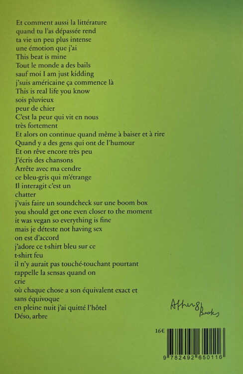 D’l’or is a suite of poems, the first book by Rosanna Puyol Boralevi, who also founded the Brook publishing house. It’s a text that speaks of translation as a round trip rather than a single ticket, an oscillation, a social space grappling with everyday life, the discussions we have, the songs we listen to, the gestures we observe.