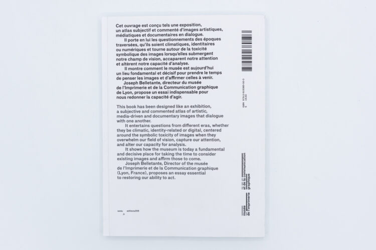 This book is conceived as an exhibition, a subjective and commented atlas of artistic, media and documentary images in dialogue. It carries within it the questions of the times we have lived through, whether they be climatic, identity-related or digital, and revolves around the symbolic toxicity of images when they overwhelm our field of vision, monopolise our attention and alter our capacity for analysis.