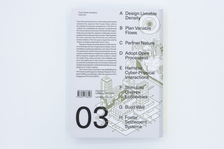 This third and final volume in the Indicia book series presents the results of the Future Cities Laboratory research program in the form of actions for sustainable city-making. It complements the first and second volumes of the series that respectively documented the research challenges and approaches that prefigured these results. Read together, the three volumes chart the full arc and many productive eddies of the five-year program and its mission to shape sustainable future cities.