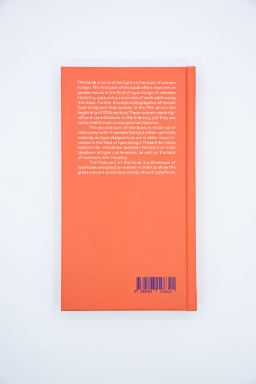 In this book, Yulia Popova seeks to highlight the work of women typographers. The first part of the book offers research on the gender issue in the field of type design. It includes statistics, data and an overview of some works dealing with this issue as well as biographies of women type designers who worked in the 19th and early 20th century. The second part is a series of interviews with 14 women currently working as type designers or otherwise involved in the field of type design. These interviews highlight the unequal distribution of male and female speakers at conferences on typography and the lack of women in the industry. The last part of the book is a showcase of typefaces designed by women that reveals the quantity and variety of these fonts.