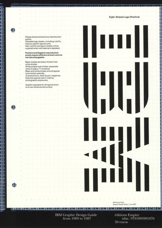 Before defining the IBM company’s graphic look in 1956, Paul Rand had never designed an entire corporate identity. The American graphic designer had created many trademarks for advertising clients, but IBM was his first foray into the conservative realm of big business communications, as well as a turning point for him. This manual offers an in-depth look at the further evolution of IBM’s house style in the 1970s and ’80s, from logotypes, fonts, numerals, and type specimens, to highly detailed information on imprinting binders, signage, packaging, and related material. It shows how the graphic designer selects and fits together material to produce visual relationships.
