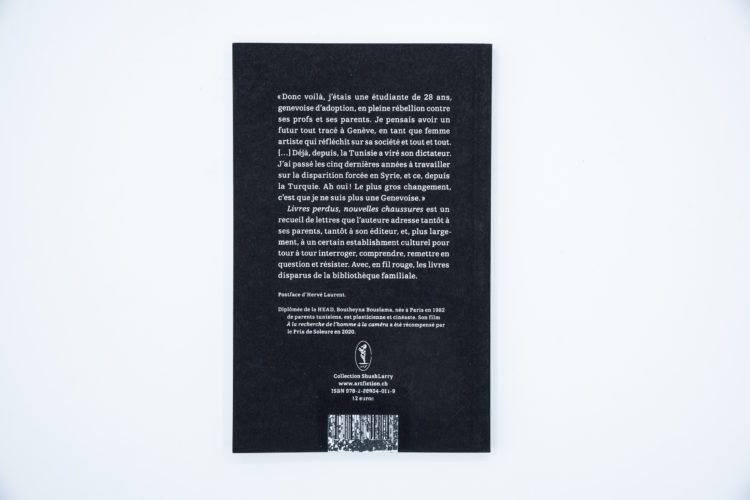 Livres perdus, nouvelles chaussures bring together eighteen letters addressed by Boutheyna Bouslama to his parents, to his publisher, and, more broadly, to a certain cultural establishment. In a frontal style, citing Beyoncé, Fellini, Carrie Bradshaw or Nizar Qabbani, she claims her choices as much as she questions the different conceptions of feminism, noting with dismay the state of this fight under certain latitudes. Some of these letters were written in 2010, others in 2019. Something old, something new, something borrowed, something blue…”