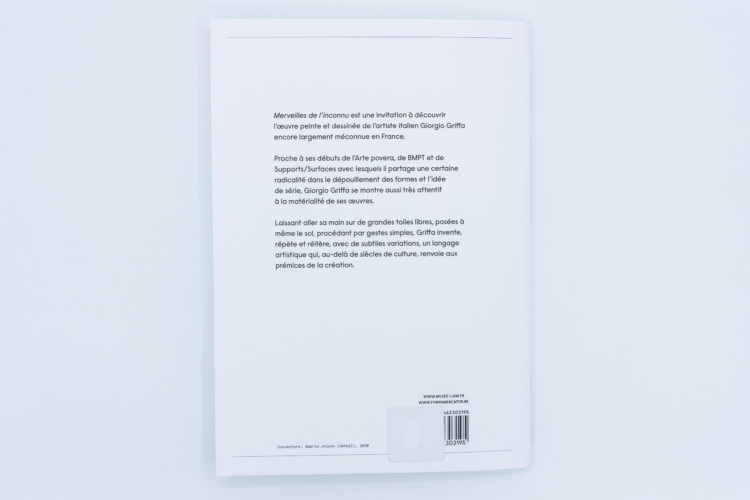 A small catalogue of a recent exhibition of one of the best Italian artists of the last fifty years. Griffa’s work has the merit to have kept painting alive during its darkest moments, like the 1980s and 1990s.