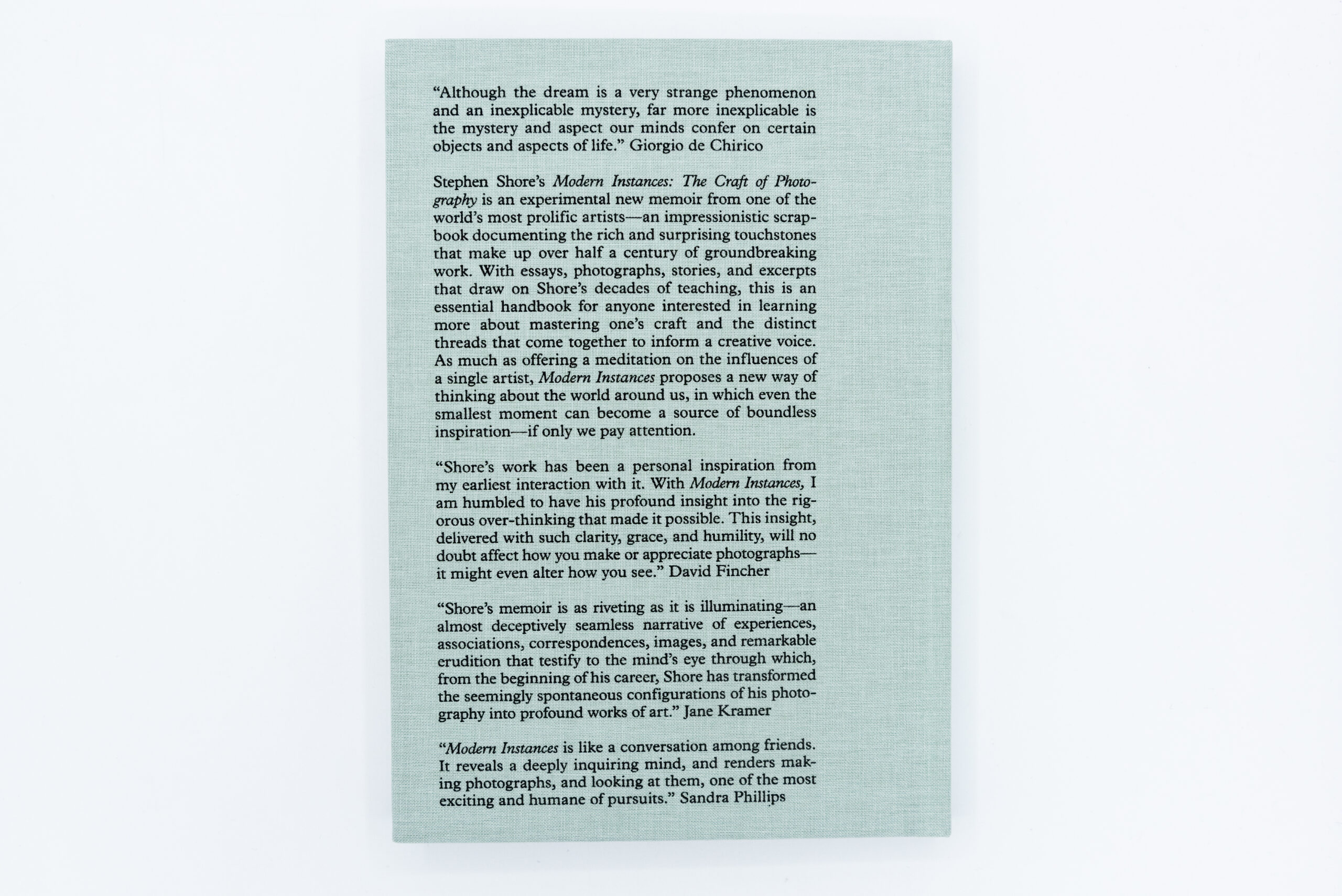 Stephen Shore’s Modern Instances: The Craft of Photography is an experimental new memoir from one of the world’s most prolific artists ― an impressionistic scrapbook that documents the rich and surprising touchstones that make up over half a century of ground-breaking work. With essays, photographs, stories, and excerpts that draw on Shore’s decades of teaching, this is an essential handbook for anyone interested in learning more about mastering one’s craft and the distinct threads that come together to inform a creative voice. As much as offering meditation on the influences of a single artist, Modern Instances proposes a new way of thinking about the world around us, in which even the smallest moment can become a source of boundless inspiration ― if only we pay attention.