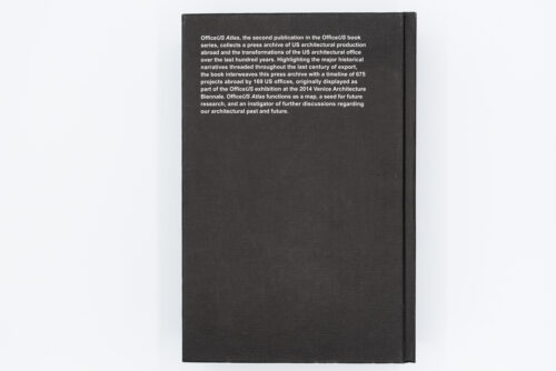 The OfficeUS Atlas collects the exhibition research in an archive of nearly 1000 architectural projects. Organized according to individual firm histories, the Atlas documents the development of U.S. architectural offices working abroad from 1914 to the present. Offices and their projects are illustrated by over 1200 photographs and architectural drawings. OfficeUS, the U.S. Pavilion for the 2014 International Architecture Exhibition – la Biennale di Venezia, reframes the history of U.S. architecture through the lens of export in two interrelated constructs: “The Office” and “The Repository”.The Repository presents 1000 projects designed by 200 US offices working abroad in a chronological archive of the last 100 years. Collectively these projects tell multiple, imbricated stories of U.S. firms, typologies, and technologies, as well as a broader narrative of modernization and its global reach.
