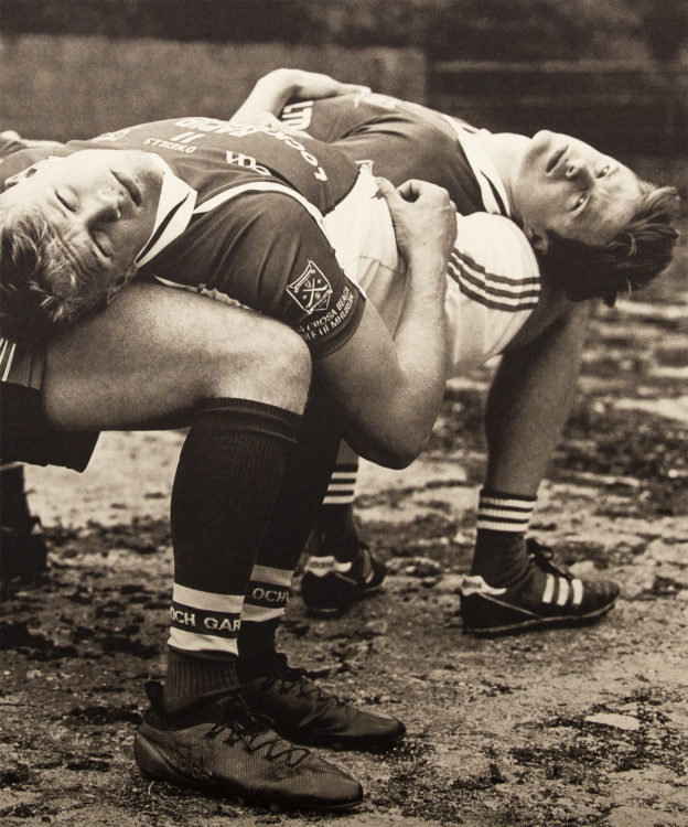 With a background in professional dance, Rodriguez’s work pays tribute to the metaphorical weight of centuries of physical labour behind cultivating the landscape and maintaining cultural heritage. Images of scarred limbs and hands, weathered faces and choreographed bodies appear as a cartography of this labour, reflecting how culture both shapes and is shaped by individuals. Elsewhere, we see the exaggerated glamour of modern female Irish dancers taken out of the glitzy ballrooms and into the fields, creating a rupture across time and space.