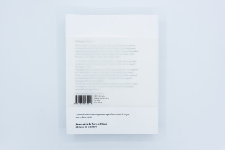 “Respirer l’ombre is the part devoted to the language of the surprising dialogue with what we call nature, which the artist began more than thirty-five years ago, and which is mainly made up of gestures. It is a dialogue that is always mezzo voce: Penone’s awareness of a brotherhood with stones or plants (he knows, like Klee, that man “is nature, a piece of nature in the area of nature”), his relaxed familiarity with Antiquity (isn’t Italy the country where the history of art takes the place of history? ) makes him converse as an equal with the tree and the stream, and with their tutelary deities (borrowed mainly from the Greco-Roman pantheon, but here and there an exotic god is invited). Respirer l’ombre can be read as a collection of mythical stories, of founding parables, without the slightest trace of pathos or grandiloquence; the myth takes on the appearance of the haiku dear to Roland Barthes, and Renoue’s texts speak of the hidden things and the beginnings of the world with precision.”