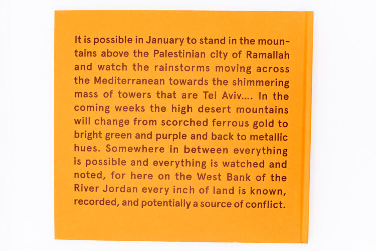 Anything is possible and everything is monitored and recorded, because here on the west bank of the Jordan River, every square inch of land is known, recorded and potentially a source of conflict. Nick Waplington lived in Jerusalem between 2008 and 2013, visiting more than 350 separate Jewish settlements in the region, from populated cities like Ariel to small outposts composed of a few caravans. The title of the book, Settlement, refers to the Jewish communities built in the area of the former state of Palestine known as the West Bank, an area of about 2,173 square miles, between the Jordan River and Jerusalem. The area was occupied by Israel in 1968, in the aftermath of the Six Day War; Israel’s right to rule is not recognized by the United Nations, which considers any Israeli building in this area a violation of international law. The book examines the topography of Jewish identity in the West Bank, which is in conflict not only with the Palestinian majority but also with mainstream Israeli society: while all the settlers are Jewish and almost all are Israeli citizens, many are not from Israel. Most of the men and women photographed by Waplington are immigrants who arrived in the West Bank from the United States, South Africa, Australia, the United Kingdom, the former Soviet Union, and other parts of the broader Jewish diaspora. The exact number of settlements cannot be accurately determined, as construction and demolition occur regularly throughout the region. In general, however, the presence of Jewish settlers in the West Bank is well established, and their construction projects continue with the support of the State of Israel.