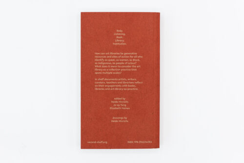 Artists, writers, curators, teachers and librarians reflect on how they can use the beloved library as a source of inspiration or as a field of action for anyone who identifies as female, queer, non-binary or person of colour. Reflecting on diversity in collections, the publication proposes art libraries as sites of intersubjective communion. It is a collaborative book acquisition project, initiated by artist Heide Hinrichs at the Royal Academy of Fine Arts in Antwerp, in which her group incorporated 223 new titles into art libraries to fill gaps, amplify voices, and seek out those who have taken the initiative or been overlooked.