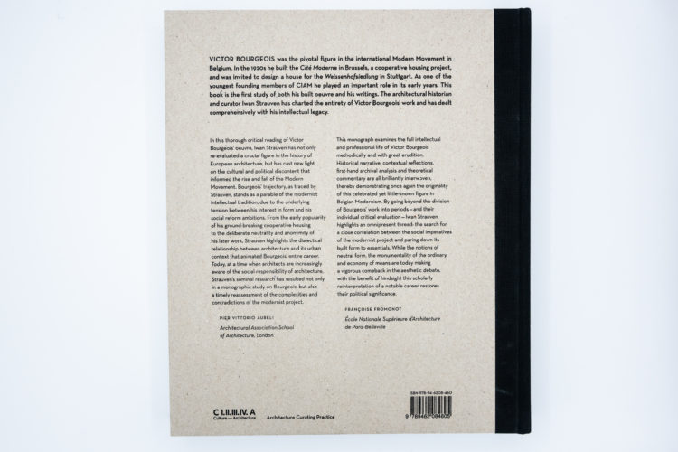“Victor Bourgeois (1897–1962) was the leading pioneer of the international Moderne Beweging (modernist movement) in Belgium. He was invited to design a house for the famous Weissenhofsiedlung in Stuttgart in 1927, and between 1928 and 1930 he played an important role in the CIAM (Congrès Internationaux d’Architecture Moderne), the most influential platform for modern architecture and urban design of the twentieth century. This book is the first study of Bourgeois’ built and textual oeuvre. Despite the refinement of his designs and acuteness of his theoretical insights, he was unjustly forgotten as an architect and urban designer.”