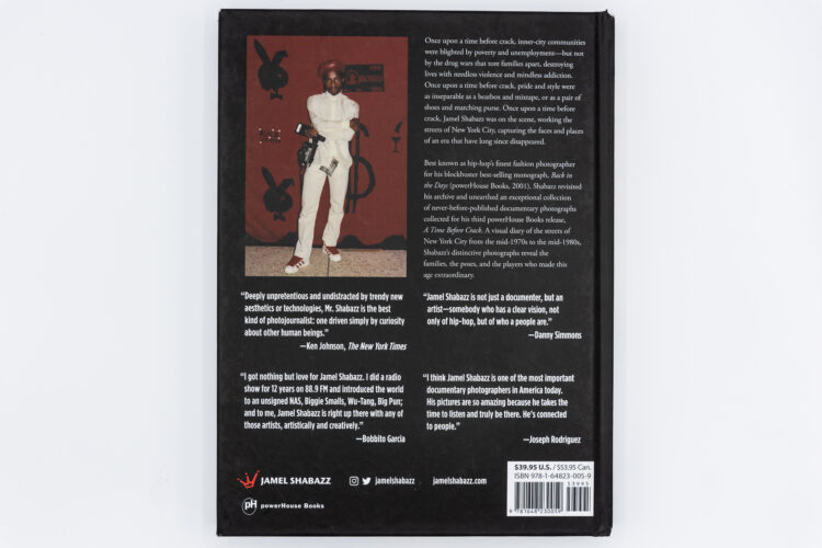 Mieux connu comme le meilleur photographe de mode du hip-hop pour sa monographie à succès, Back in the Days (powerHouse Books, 2001), Jamel Shabazz a revisité ses archives et déniché une extraordinaire collection de photographies documentaires jamais publiées, rassemblées pour sa troisième publication chez powerHouse Books, A Time Before Crack, un journal visuel des rues de New York du milieu des années 70 au milieu des années 80. Les photographies distinctives de Jamel Shabazz révèlent les familles, les poses et les acteurs qui ont rendu cette époque extraordinaire.