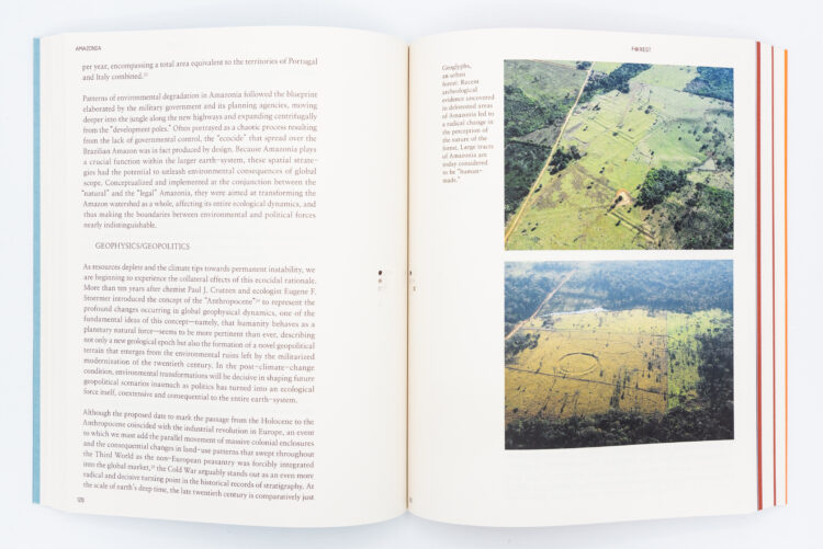 Amazonia: Anthology as Cosmology aborde les thèmes des féminismes décoloniaux et des temporalités indigènes, de la mémoire externalisée et l’effacement, des plantes sacrées et de l’extractivisme pandémique des entreprises et des États et de la violence systémique, des possibilités militantes de l’imagination mythologique et des matrices visuelles communes de l’univers amazonien. Le livre examine également l’imaginaire occidental de l’Amazonie, entre racines coloniales, capitalisme racial et présent corporatif, technologique et paternaliste.