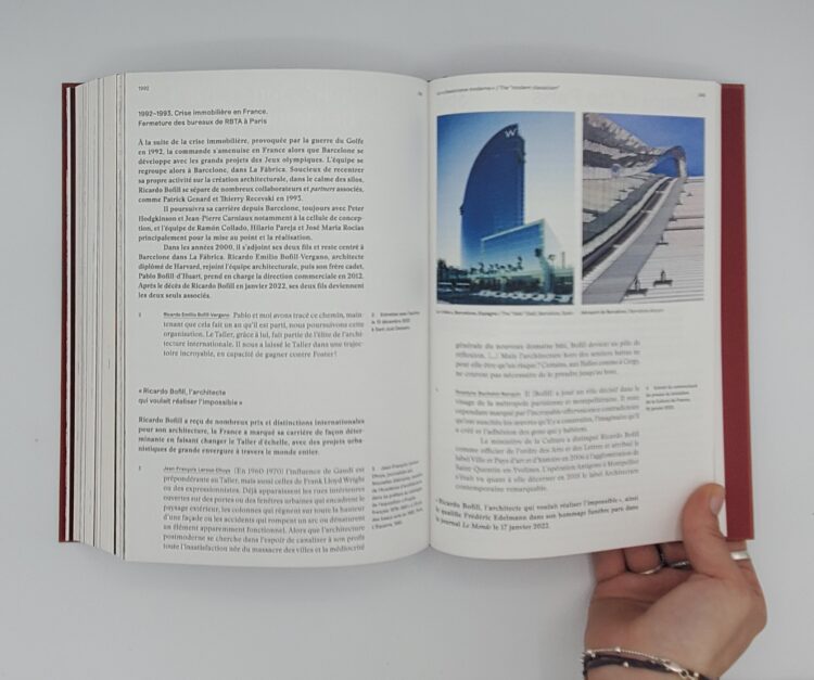 Conçu comme un véritable journal de bord largement illustré, décrivant les relations étroites entre l’architecture et la politique sous Valéry Giscard d’Estaing et François Mitterand, cet ouvrage revient pour la première fois sur l’emblématique chantier des Halles, couvert par une clause de confidentialité jusqu’au décès de l’architecte, en 2021. À travers les récits de témoins de l’époque, Jack Lang, Jean-Jacques Aillagon, Paul Chemetov, Roland Catro. comme les archives du Taller, l’auteure décrit la prodigieuse ascension de Bofill au rang de superstar, ainsi que l’importance de l’architecture, alors au centre de toutes les conversations.