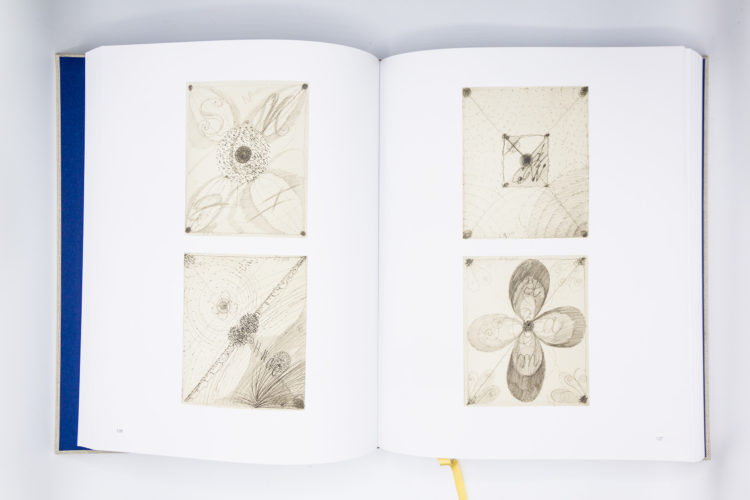 Les dessins de ce premier volume d’un nouveau catalogue raisonné représentent une période intense de dix ans de la vie de Hilma af Klint (1862-1944) qui allait poser les bases de ses réalisations ultérieures. En 1896, af Klint et quatre autres femmes ont formé les Cinq, un groupe imprégné des croyances spiritualistes qui imprégnaient l’Europe à cette époque, notamment la théosophie, le rosicrucianisme et d’autres courants de la pensée religieuse libérale. De 1896 à 1907, les Cinq se sont engagés dans une méthode systématique quotidienne d’expérimentations spirituelles. Lors des séances, Hilma af Klint dessinait automatiquement des esquisses spirituelles à partir des messages que le médium (pas toujours le même membre) communiquait des esprits que le groupe convoquait. Le système élaboré de symboles, la géométrie et l’imagerie biologique qui caractérisent son travail trouvent tous leur origine au cours de cette période.