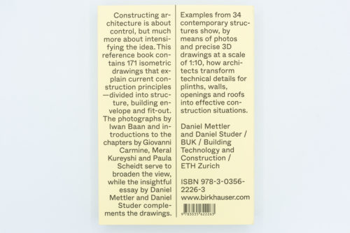 Du concept au détail, ce manuel présente le monde de la construction contemporaine à l’aide d’isométries 3D clairement compréhensibles ; des photographies illustrent le contenu.