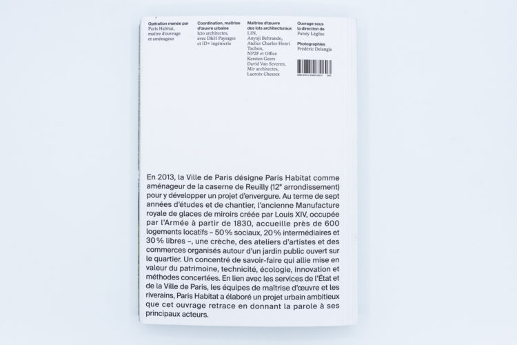 Au terme de sept années d’études et de chantier, la caserne de Reuilly (Paris 12), ancienne Manufacture royale de glaces de miroirs créée par Louis XIV et occupée par l’Armée à partir de 1830, est complètement transformée et réaménagée pour accueillir près de 600 logements locatifs – 50 % sociaux, 20 % intermédiaires et 30 % libres –, une crèche, des ateliers d’artistes et des commerces organisés autour d’un jardin public ouvert sur le quartier.