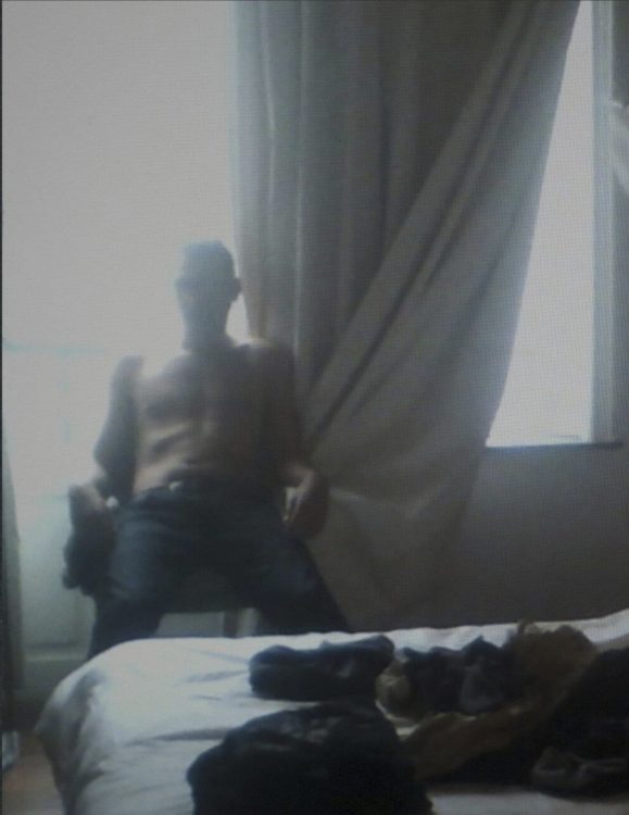 Les photos sont issues de chats vidéo par Skype. De 15 et 45 minutes pendant lesquelles un homme se déshabille, torse nu minimum. Une condition : l’anonymat. Pas de critères physiques, rien de défini à l’avance. Je les dirige à distance, ils ne savent pas exactement ce que je cadre puis nos écrans s’éteignent. Ils veulent généralement paraître à leur avantage. En ces temps de renouveau féministe et de questionnement des rôles attribués à chacun, ce livre pose un regard contemporain sur l’image de l’homme et de la femme. Mon objectif n’était pas de les rendre beaux, mais plutôt d’observer et d’expérimenter autour du corps masculin. Pour une fois, c’est un homme qui est déshabillé, et par une femme. Passif, il consent aux injonctions de la voix qui émane de l’ordinateur, le guidant dans ses poses. Alors que les textes du livret parlent d’une femme qui se présente comme une image stéréotypée et lessivée du désir.