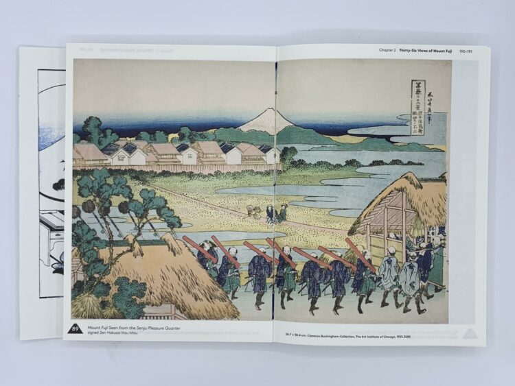 Les « Trente-six vues du mont Fuji » de Hokusai et les trois volumes des « Cent vues du mont Fuji » qui ont suivi témoignent de sa fascination pour un motif unique : le mont Fuji. La quasi-obsession d’Hokusai pour le mont faisait partie de son désir d’immortalité artistique. Dans la tradition bouddhiste et taoïste, le mont Fuji était censé détenir le secret de la vie éternelle, comme le suggère une interprétation populaire de son nom : « Fu-shi » (« pas la mort »). Les « Trente-six vues du mont Fuji » ont été réalisées entre 1830 et 1832, alors que Hokusai était septuagénaire et au sommet de sa carrière. Parmi les estampes, on trouve trois des plus célèbres de l’artiste : La Grande Vague au large de Kanagawa, Grand vent, matin clair et Orage sous le sommet. À l’époque de son deuxième grand hommage au mont Fuji, les trois volumes composant les « Cent vues du mont Fuji », il utilisait les noms d’artiste Gakyo rojin (« Vieil homme fou de peinture ») et Manji (« Dix mille choses », ou « Tout »). Opposant la constance et la solidité de la montagne aux ravages des éléments environnants, Hokusai dépeint le mont Fuji à travers différentes saisons, conditions météorologiques et décors, et transmet ainsi un message important : alors que la vie change, le mont Fuji reste immuable.