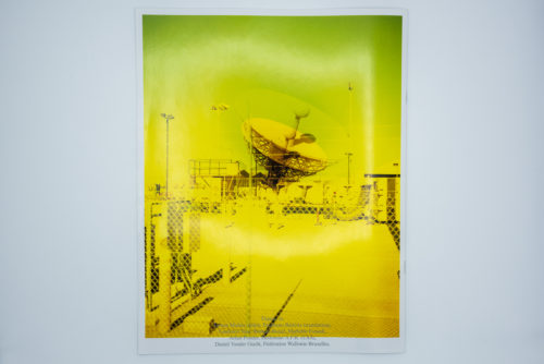 Si Sébastien Reuzé cherchait à ses débuts l’émerveillement d’un seul coup d’œil, en faisant jaillir d’un fait trouvé devant lui une dimension fictionnelle, avec Indian Springs il est en plein dans la fiction. Autorisé à photographier sur une base de l’US Air Force où des soldats pilotent des drones qui sévissent en Afghanistan ou en Syrie par exemple, l’artiste s’est vu obligé de mettre en scène les images où figurent des pilotes. Donc avec des photographies d’extérieur à caractère documentaire, mais aux couleurs altérées par des rayons X à la sortie non pas de la base mais du pays, l’artiste ne s’est pas contenté de fictionnaliser les prises d’intérieur, mais il a posé quelques objets dans son installation, par exemple une casquette de soldat ornée de cristaux de sel, pour nous amener dans des zones bien connues de l’écrivain de SF J. G. Ballard.»