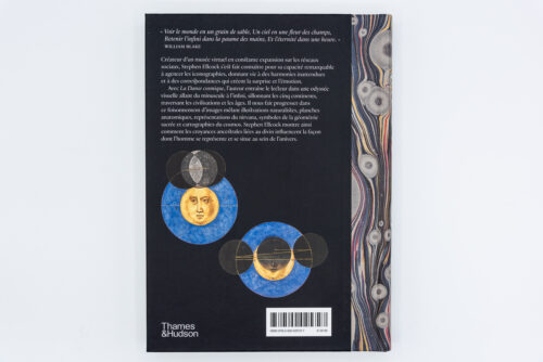Avec La Danse cosmique, il nous entraîne dans une odyssée visuelle allant du minuscule à l’infini, sillonnant les cinq continents, traversant les civilisations et les âges. Il nous fait progresser dans un corpus mêlant illustrations naturalistes, planches anatomiques, représentations du nirvana, symboles de la géométrie sacrée et cartographies du cosmos pour montrer comment les croyances ancestrales liées au divin influencent la façon dont l’homme se représente et se situe au sein d’un univers qui le dépasse.