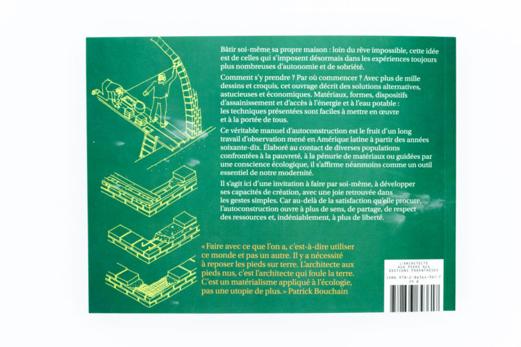 Ce véritable manuel d’autoconstruction est le fruit d’un long travail d’observation mené en Amérique latine à partir des années soixante-dix. Élaboré au contact de diverses populations confrontées à la pauvreté, à la pénurie de matériaux ou guidées par une conscience écologique, il s’affirme néanmoins comme un outil essentiel de notre modernité.