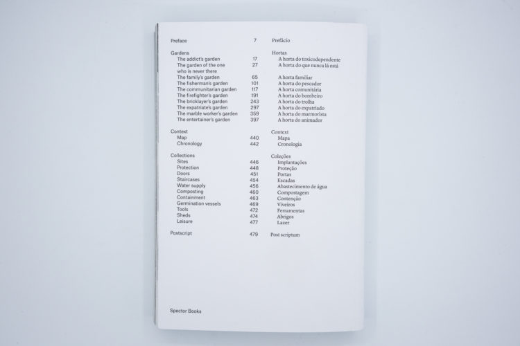 Notes from the Underdog / Anotações sobre o Abaixo de Cão examine les pratiques agricoles et l’appropriation de l’espace dans la ville de Porto, au Portugal, et les différentes façons dont ce phénomène s’est manifesté au lendemain de la crise financière de 2011. Le livre raconte l’histoire de dix jardins et de leurs propriétaires, qui ont réanimé des sites urbains contaminés en cultivant des fruits et des légumes comme source de nourriture. Pour y parvenir, ils ont développé des infrastructures telles que des systèmes d’arrosage et d’irrigation et des méthodes de culture, de recyclage et de compostage, tout en construisant des structures de stockage et en produisant leurs propres outils. Bien que les jardins soient principalement destinés aux personnes qui s’en occupent, ils se prêtent également à des activités récréatives et de loisirs collectifs.