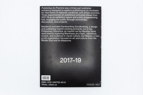 Ce livre documente Publishing as Practice, une résidence à Ulises – une plateforme curatoriale basée à Philadelphie – qui explore l’édition comme un incubateur pour de nouvelles formes de pratiques éditoriales, curatoriales et artistiques.