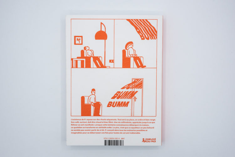 P. est un solitaire, il doit vivre avec ses névroses. Ainsi tous les aspects de son existence sont réglés au millimètre près. Tout est à sa place, en ordre et bien rangé. Son café, surtout, doit être chaud et bien filtré. Son petit confort personnel repose sur des rituels séquencés. Tout se passait pour le mieux jusqu’à l’arrivée de Röhner. Lorsque cette lointaine connaissance débarque à la maison, son quotidien se transforme en véritable enfer. Le pire, c’est que ce squatteur un peu balourd ne semble pas vouloir partir de si tôt. P. conçoit en conséquence tous les scénarios possibles et imaginables pour se débarrasser une fois pour toutes de ce convive indésirable.