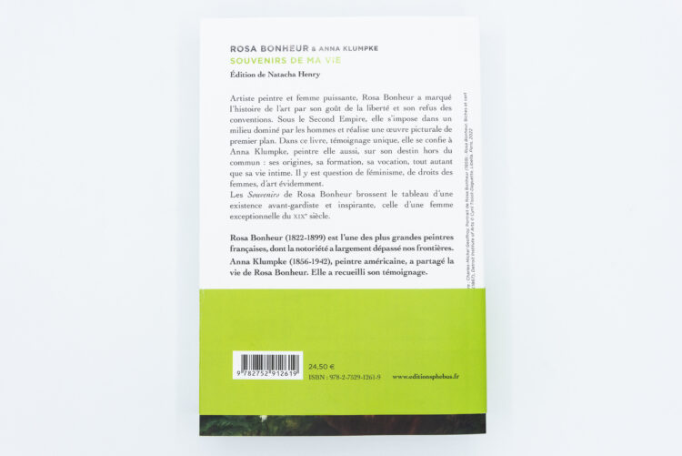Neuf ans après cette première rencontre, A. Klumpke est de retour au château de By, demeure de Rosa. Entre les deux femmes, une profonde affinité se fait jour. Venue pour quelques semaines, Anna finit par rester. Admirative, enthousiaste et attentive, Anna ne doute pas un instant que le monde puisse être fasciné par le témoignage de Rosa Bonheur. Elle en fera œuvre littéraire et historique. Tout au long de leurs entretiens, Rosa Bonheur évoque ses origine, sa formation tout autant que sa vie personnelle dont ces années communes avec Nathalie Micas. Il est ici question du féminisme, des droits des femmes, du statut des femmes peintres aussi bien en France qu’outre Atlantique. Elle évoque la reconnaissance officielle – elle est la première artiste femme à être faite Chevalière de la Légion d’honneur -, le succès de ses toiles sur le marché de l’art lui offrant une indépendance financière. Il est ici question des personnalités de l’époque qu’elle côtoie et apprécie comme Buffalo Bill, le duc d’Aumale, l’impératrice Eugénie et bien d’autres encore.