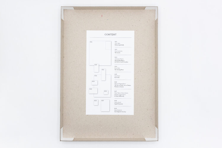 L’imprimé contenu dans cette boîte peut être une exposition, si l’on décide de suivre ses prépositions. Prenant le thème de la solidarité comme fil conducteur, SYMPTOMS OF THE FUTURE offre au visiteur des liens étroits avec diverses œuvres, stimulant la perception, la réflexion et/ou même la relation physique au-delà de l’offre de directives pour la mise en scène d’une exposition ou de partitions pour l’exécution d’une œuvre d’art. Une série de thèmes – dont les soins, le savoir situé, l’unité et la crise – sont entrelacés dans les contributions.