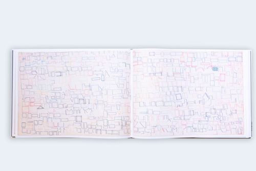 Le dessin monumental de Berheman consiste en des albums remplis d’itérations de motifs pris dans le paysage urbain. Pourtant, il n’y a rien de diariste ici, il dessine les motifs les uns après les autres comme s’il écrivait avec des pictogrammes. Je dois dire que lorsque j’ai vu ce dessin, j’ai été tellement impressionné que je me suis dit que c’était la chose artistique la plus radicale que j’avais vue depuis longtemps. Ce livre est un chef-d’œuvre !